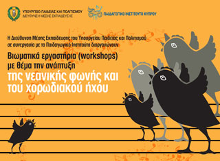 Η Διεύθυνση Μέσης Εκπαίδευσης και το Παιδαγωγικό Ινστιτούτο διοργάνωσαν σειρά βιωματικών εργαστηρίων (workshops) με θέμα την ανάπτυξη της νεανικής φωνής και του χορωδιακού ήχου. Για τη διεξαγωγή των εργαστηρίων προσκλήθηκαν οι εγνωσμένου κύρους και διεθνούς φήμης μαέστροι και παιδαγωγοί με ειδίκευση στη Φωνητική Μουσική Εκπαίδευση, Basilio Astulez και Zimfira Poloz. Tα βιωματικά εργαστήρια πραγματοποιήθηκαν από την Πέμπτη 8 Μαρτίου μέχρι το Σάββατο 10 Μαρτίου 2018, στο Λανίτειο Λύκειο στη Λεμεσό και στο Λύκειο Λατσιών στη Λευκωσία.