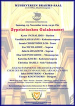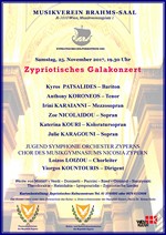 Το Σάββατο 25.11.2017 έλαβε χώρα, στην έδρα του Συλλόγου Φίλων της Μουσικής Βιέννης (Wiener Musikverein), η καθιερωμένη πλέον Κυπρίων Συναυλία, την οποία διοργανώνει σε ετήσια βάση το Kυπριακό Πολιτιστικό Κέντρο Βιέννης. Η συναυλία τελούσε υπό την αιγίδα του Υπουργού Παιδείας και Πολιτισμού της Κυπριακής Δημοκρατίας Δρ. Κώστα Καδή. Στη συναυλία συμμετείχαν οι καταξιωμένοι Κύπριοι και Έλληνες καλλιτέχνες Κύρος Πατσαλίδης (βαρύτονος), Αντώνης Κορωναίος (τενόρος), Ζωή Νικολαΐδου (σοπράνο), Κατερίνα Κουρή (σοπράνο κολορατούρα), Γιούλη Καραγκούνη (δραματική σοπράνο), Ειρήνη Καραγιάννη (μετζοσοπράνο), η Συμφωνική Ορχήστρα Νέων Κύπρου καθώς και η Χορωδία του Μουσικού Σχολείου Λευκωσίας σε διδασκαλία Λοΐζου Σ. Λοΐζου. Τη συναυλία ετίμησαν με την παρουσία τους ο Υπουργός Παιδείας και Πολιτισμού, Πρέσβεις και διπλωμάτες ξένων χωρών, ο Μητροπολίτης Αυστρίας Αρσένιος, o Mητροπολίτης Κυρηνείας Χρυσόστομος και o Mητροπολίτης Σισανίου και Σιατίστης Παύλος και άλλοι εκπρόσωποι της Ορθόδοξης Εκκλησίας.
