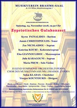 Στη συναυλία που διοργανώθηκε το 2018 συμμετείχαν, υπό τη διεύθυνση του καλλιτεχνικού διευθυντή της ΣΟΝΚ Γιώργου Κουντούρη, οι καταξιωμένοι σολίστ, Κύρος Πατσαλίδης (βαρύτονος), Γιάννης Χριστόπουλος (τενόρος), Ζωή Νικολαΐδου (σοπράνο), Κατερίνα Κουρή (σοπράνο κολορατούρα), Γιούλη Καραγκούνη (δραματική σοπράνο), Έλσα Γιαννουλίδου (μετζοσοπράνο) και Μαρία Πρεμ (σόλο βιολί), η Συμφωνική Ορχήστρα Νέων Κύπρου, καθώς και η Χορωδία του Μουσικού Λυκείου Λεμεσού σε διδασκαλία Σόλωνα Κλαδά. Η συναυλία, η οποία τελούσε υπό την αιγίδα του Υπουργού Παιδείας και Πολιτισμού Δρ. Kώστα Χαμπιαούρη πραγματοποιήθηκε με μεγάλη επιτυχία, στις 25.11.2018 στην έδρα του Συλλόγου Φίλων της Μουσικής Βιέννης (Wiener Musikverein) στη Βιέννη, Αυστρία.