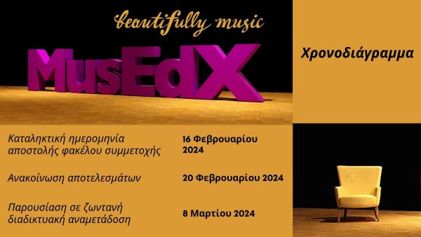 Αλλαγή ημερομηνίας παρουσίασης της εκδήλωσης MusEdX2024 07/02/2024